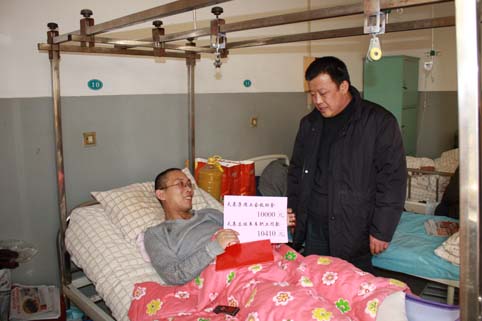 ??? 在重癥監(jiān)護室搶救治療期間,醫(yī)療費高達18萬余元,這對一個工薪家庭來說是一個巨大的數(shù)字和沉重的壓力。面對此種情況,公司領導沖上前去,八方協(xié)調:侯可斌總經理在小郭入院當晚,不僅結算了前期的檢查治療費用,還墊付了10000元現(xiàn)金為小郭辦理了住院手續(xù);組織全體員工為小郭捐款10410元;經公司申請、集團工會委員會研究、侯秀峰董事長批準,從集團互助金中拿出10000元對小郭進行救助。